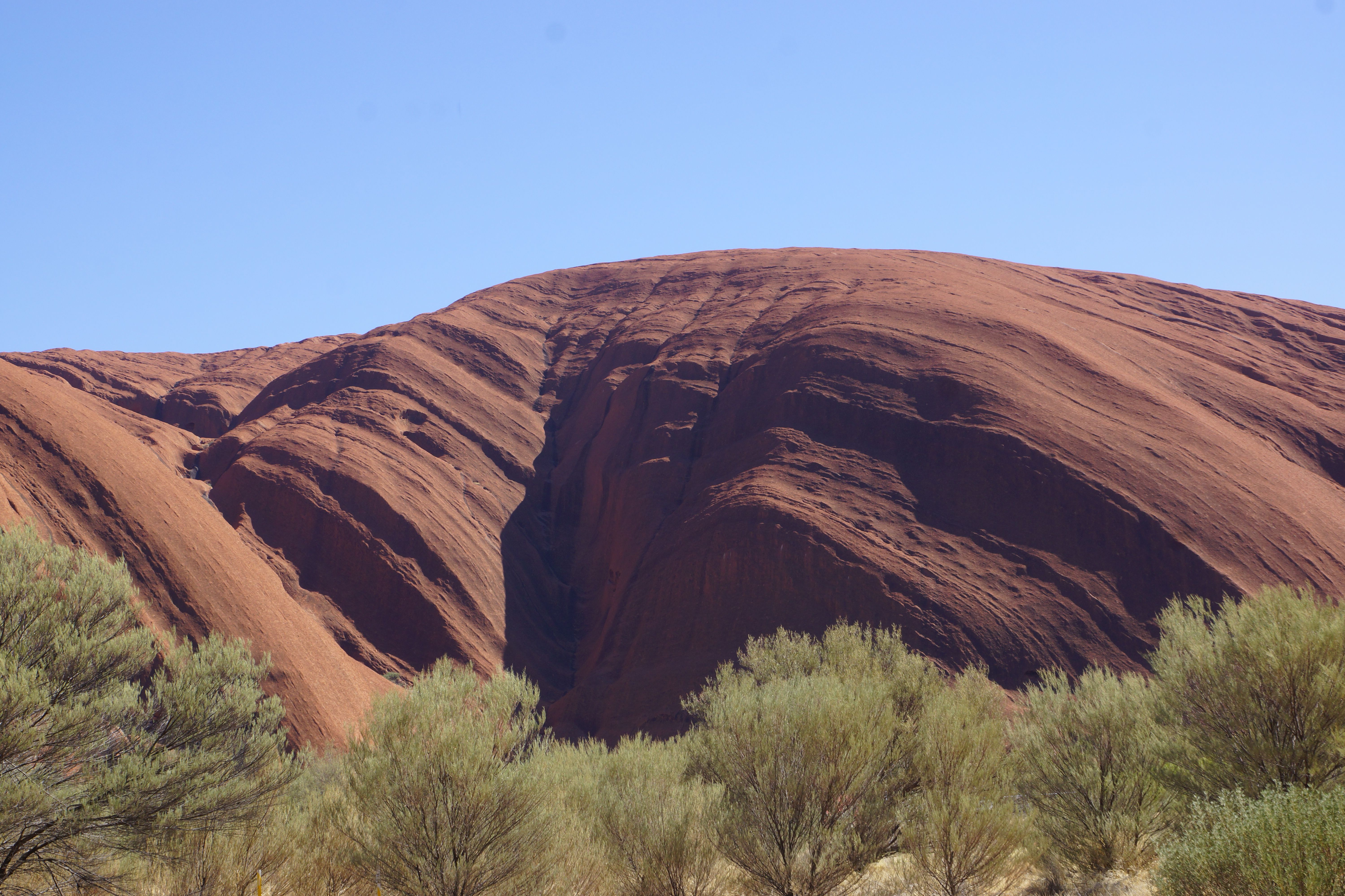 Uluru umrunden wir diesmal nicht per pedes, sondern mit dem Auto. Von Süd-Ost gesehen