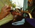 der uns gebracht wurde großzuziehen. Er wurde mittels eines Puppen-Fläschchens, das auch bei den kleinen Igeln zur Anwendung kam,
